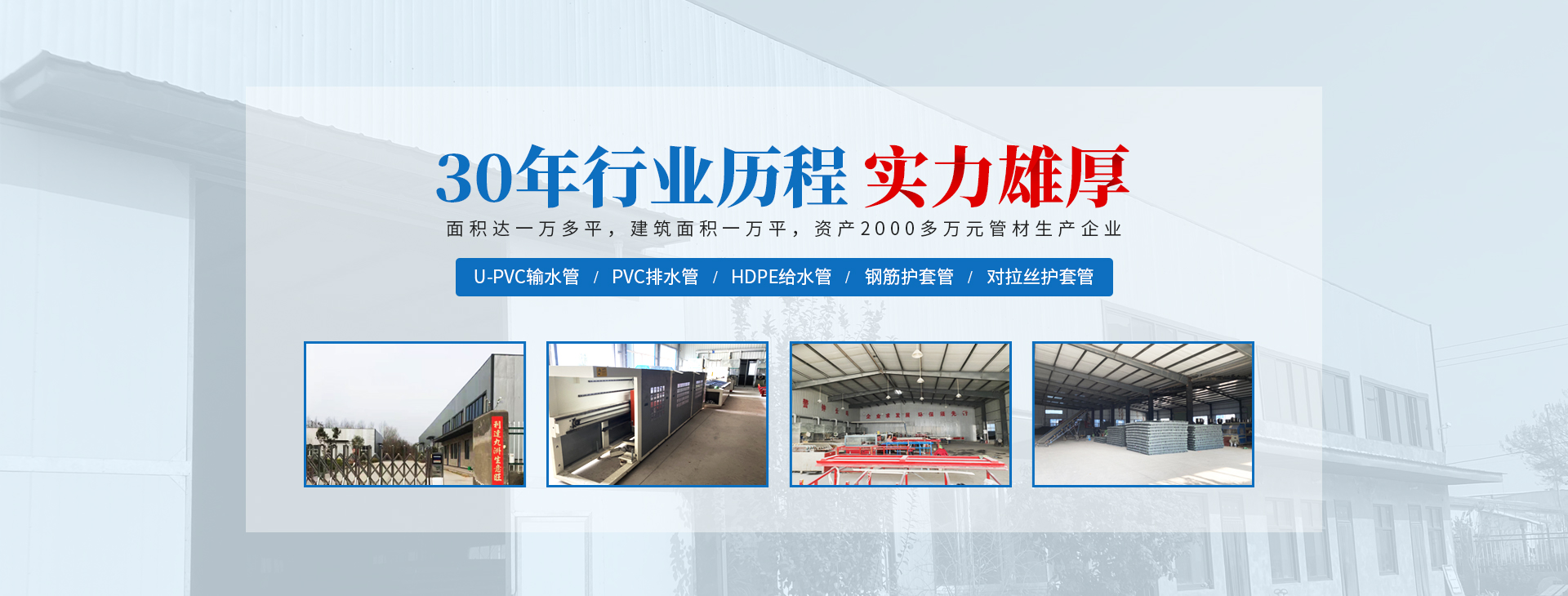 安陽(yáng)市祝豐塑化有限公司坐落在滑縣工業(yè)園區(qū),東臨大廣高速,西臨京珠高速,是鄭州、鶴壁、安陽(yáng)、濮陽(yáng)四個(gè)城市的輸紐,交通便利、環(huán)境優(yōu)美。 公司始建于八十年代,經(jīng)過二十余年的艱辛創(chuàng)業(yè),規(guī)模不斷壯大,由十多萬元資產(chǎn)的小廠,發(fā)展到現(xiàn)占地面積達(dá)一萬多平,建筑面積一萬平,資產(chǎn)2000多萬元管材生產(chǎn)企業(yè)。公司生產(chǎn)PVC-U、PVC排水管、HDPE給水管、鋼筋護(hù)套管管道通訊管材等產(chǎn)品,廣泛用于農(nóng)田節(jié)水、高山引水、人畜用水、建筑、電力通訊等多種用途,品種齊全。為了滿足用戶需求,可承攬各種給水、節(jié)水、灌溉工程。“祝豐塑化”憑借強(qiáng)勁的實(shí)力,優(yōu)良的管理水平。“以質(zhì)量求生存,以信譽(yù)求發(fā)展”的原則全力以赴和大家共同塑造美好未來。..